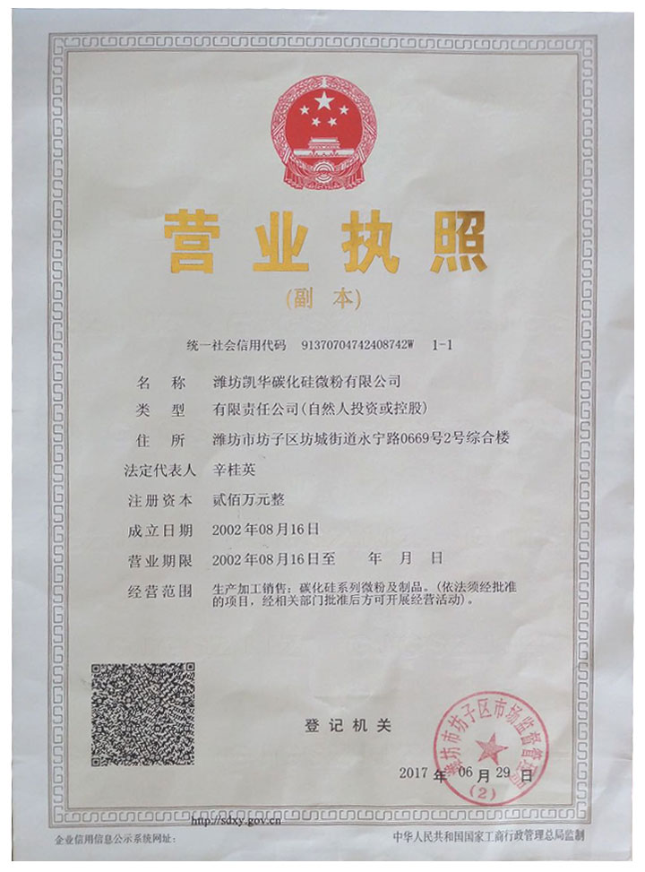 濰坊凱華碳化硅微粉有限公司成立于2002年,國家高新技術(shù)企業(yè),公司占地40畝,標(biāo)準(zhǔn)廠房19000平方,辦公樓、研發(fā)2000平方,年生產(chǎn)能力3萬噸。一直從事陶瓷級微粉的生產(chǎn)銷售,所生產(chǎn)的微粉具有純度高、粒形好、穩(wěn)定性強(qiáng)等特點(diǎn),主要用于反應(yīng)燒結(jié)、無壓燒結(jié)、硅碳棒新工藝、汽車尾氣處理(DPF)、納米隔熱保溫、機(jī)車制動、防腐涂料、研磨拋光、橡膠樹脂等領(lǐng)域。標(biāo)準(zhǔn)產(chǎn)品有:F240、F1200、W40、W28、W20、W14、W10、W7、W5、W3.5、W2.5、W2、W1.5、W1、W0.5、D3E、5S、100F及整形高密度系列綠碳化硅微粉,廣泛應(yīng)用于燒結(jié)、防腐、研磨拋光、涂腐等廣大領(lǐng)域。